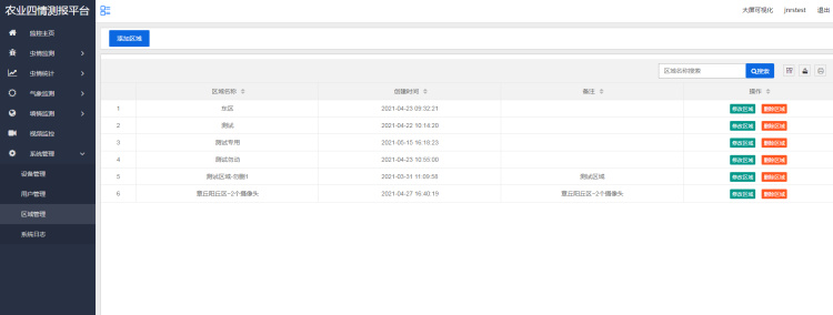 区域分析:选择区域,选择时间后点击查询即可查询出所选时间段区域内虫情设备的害虫数量。
